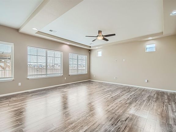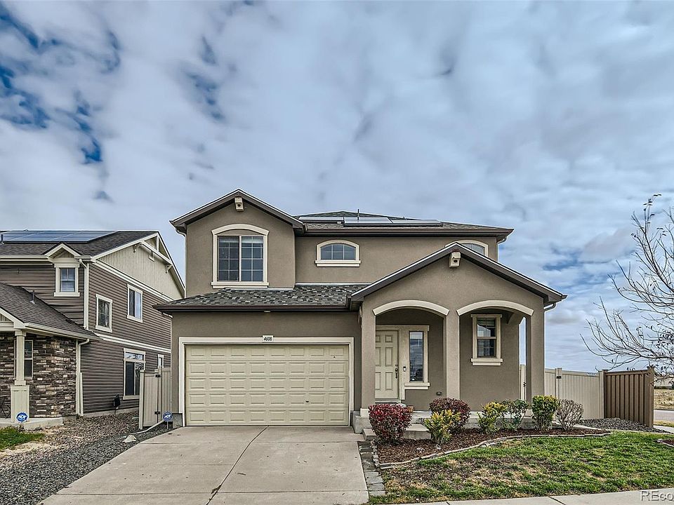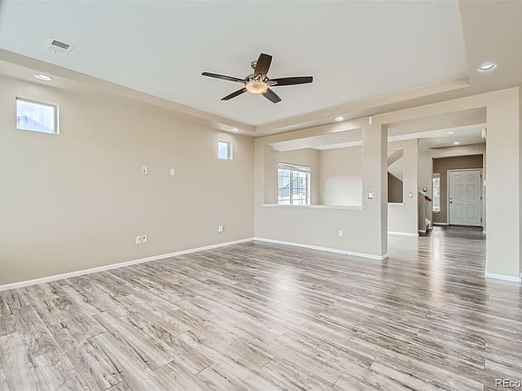 Welcome to this stunning two-story home in the heart of Green Valley Ranch! With 3 spacious bedrooms and 4 well-appointed bathrooms, this residence is designed for both comfort and convenience. Step inside to find brand new carpet on the upper and basement levels and stylish LVP flooring on the main level, creating a fresh and inviting ambiance. The heart of the home is the expansive kitchen, featuring a large island with ample countertop space, a pantry, and eating areas at both the island and in the dining nook—perfect for gatherings and family meals. Enjoy the fully fenced backyard complete with a beautiful pergola, patio, and south-facing garden boxes, ideal for outdoor entertaining or gardening enthusiasts. The upstairs loft adds versatility to the living space, while the large primary bedroom is a true retreat, showcasing a tray ceiling, ceiling fan, and an en-suite 3/4 bathroom with dual sinks, a spacious walk-in shower, and a generous walk-in closet. The finished basement offers a fantastic family room, perfect for movie nights or as a potential theater space, along with a full bathroom and an unfinished area that is already framed in, making it easy to convert into a fourth bedroom. With high ceilings throughout and an abundance of natural light from large windows facing west, this home is both airy and bright. Conveniently located near shopping, Denver International Airport, I-70, E-470, parks, and public transportation, this property truly has it all. Don’t miss the opportunity to make this remarkable home yours!