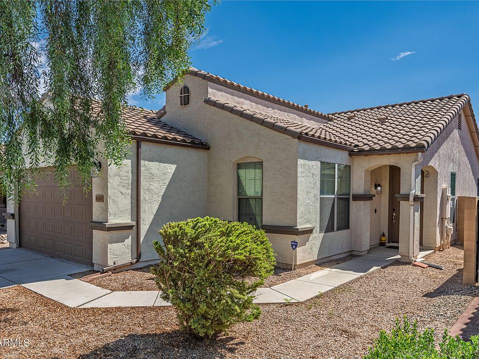 Discover this single level home in sought after Maricopa Meadows, known for its green parks, scenic walkways, disc golf course & convenient proximity to schools. Providing modern comfort in this beautifully updated 1,700 sq. ft., 3 BR, 2BA. Enjoy a spacious kitchen with ample cabinetry, a cozy living area, and updated private full size bath rain fall shower. Matching flooring throughout the home adds a touch of elegance. New updates to the pluming! The low-maintenance backyard offers endless possibilities for relaxation Don't miss the opportunity to make this Maricopa Meadows gem your home.