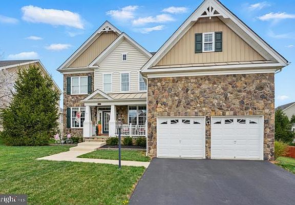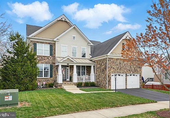 Eligible for VA Home Loan assumption @ 2.25%! This spectacular 4 bedroom, 4.5 bath home is in the highly sought after Dominion Valley Country Club community! This well maintained and lovingly cared for eleven year old home welcomes you with an attractive stone front and extended 2 car garage with a utility sink and a professionally sealed floor. Enjoy the relaxing covered slate front porch with stunning Bull Run Mountain sunset views. Enter into a wide foyer with chair rail accents and crown molding in the formal dining room and formal living room. The main level offers a private study/office with french doors, next to a half bath, opening into the large family room with a natural gas fireplace. The spacious kitchen boasts granite countertops, an island with bar seating, a sizeable pantry, gas cooktop, built-in microwave and wall oven, stainless steel appliances, and gorgeous hardwood floors. The open floor plan offers a seamless flow between rooms, making it ideal for gatherings. The solarium has plenty of natural light and walks out to maintenance free Trex stairs leading down to a beautifully stamped large concrete patio with a hot tub that conveys. Retreat upstairs to a primary suite offering a large sitting room, a primary bath with soaking tub, separate shower, double sinks and a walk-in closet. The Princess Suite offers a private full bath and walk-in closet with impressive westerly views. Bedrooms three and four share a Jack and Jill bathroom and each bedroom has an ample walk-in closet. Meander downstairs to a finished basement that offers extra space for a rec/game room area – its use is only limited by your imagination! The distinctive triple glass doors allow the morning light to flow freely throughout the room. The finished full bath opens the possibility of adding a flex or fifth bedroom. The storage room is a generously sized area that has built-in shelves and moveable shelving. An additional refrigerator is available as well. A Radon mitigation system is already in the home. Situated within the prestigious Dominion Valley Country Club, residents enjoy an exceptional lifestyle with an array of resort-style amenities. The community features two 18-hole Arnold Palmer Signature golf courses, a grand 30,000-square-foot clubhouse offering multiple dining venues, elegant event spaces, and a well-appointed pro shop. Stay active at the Sports Pavilion, complete with a state-of-the-art fitness center, four outdoor pools including a 25-meter competition pool, and an indoor pool for year-round enjoyment. Newly renovated pickle ball and tennis courts, scenic walking trails, two stocked fishing ponds, and numerous tot lots provide endless opportunities for recreation and relaxation. A short bike ride away is the free-use Waverly Club, with outdoor and indoor pools, a small versatile gym, basketball, volleyball, tennis/pickle ball courts, with a playground. Residents benefit from the convenience of having four schools located within the community. Dominion Valley offers an ideal location with nearby shopping, dining, easy access to I-66, and a short ride to Washington, D.C. **PLEASE be careful to Not let the cats outside - there are 2 - one named Lacy & the other is Sassy... " there is outdoor camera visual & audio equipment"