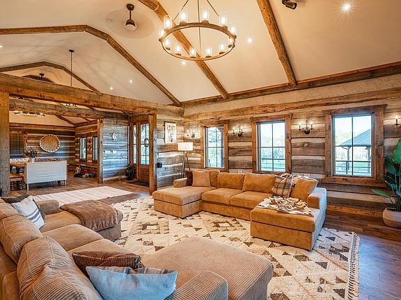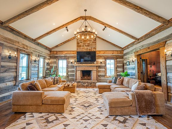 Main log cabinStocked pondLarge red barnEnclosed garageTwo-bed one-bath cottageNewly made chicken coop