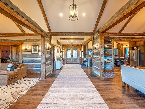 Beautiful country estate with two homes on 24+ acres of West Virginia heaven! Hosting paradise with room to spread out loved ones and friends. Catch eight species of fish in the stocked pond or hunt deer, ride ATVs, or tap maples for syrup in the eight acres of woods. A tractor, wood, livestock, storage, and cars fit nicely in the large red barn and enclosed garage. A newly made chicken coop houses 20+ birds, and a 90'x30' high tunnel extends the food growing seasons. 14 acres of glyphosate-free pasture provides hay and income, while an extra 200-amp wired service can supply electricity for an additional home/shop. The two-bed, one-bath cottage can be used as rental income, for guests, or parents. The main log cabin was finished in 2024, built with/ trees from the property & an 1840s chim