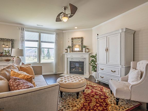 MOVE-IN READY absolutely gorgeous detached ranch condo in Canton's Grandview Estates community! This Abbeyville floorplan is on a slab for true single-level living and has been upgraded to perfection. Oversized kitchen island, beautiful granite counters, the perfect compliment to the glass backsplash and fresh white cabinetry with elegant hardware and all stainless steel appliances included. Soak up the sunshine in the 3-season room with its beautiful, long view of the common space. Premium lot with great views and privacy in the Primary suite as well. Upgraded Primary bath ft. soaking tub with tile surround, double sinks, granite and walk-in closet. Front room makes a lovely home office, formal living, or a great space for a piano - truly flexible. Hardwood floors throughout ceiling fans, added recessed lighting, and a stunning fireplace with marble surround. Buyers will appreciate the architectural nooks, storage and thoughtful details throughout. Available for immediate occupancy. HOA takes care of snow and lawn.