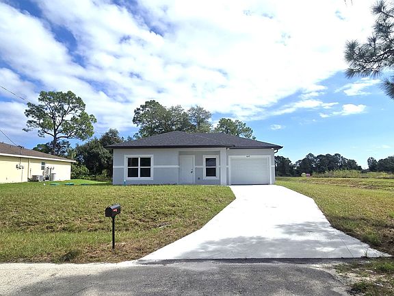 Welcome to the BRAND NEW 2/2/1-SW LEHIGH ACRES, a newly constructed gem nestled in the heart of Lehigh Acres, FL. This move-in ready home boasts two spacious bedrooms, two bathrooms, a modern kitchen and a large one car garage. The primary bedroom features an en-suite bathroom with a large, tiled shower. The entire house is adorned with all-tile floors, giving it a sleek and modern look. The eat-in kitchen is equipped with stainless steel appliances, ready for your culinary adventures, wood cabinets, granite counters and a pantry. The house also includes an oversized one-car attached garage with washer and dryer hookups. The property is pet-friendly and features a large backyard, perfect for your furry friends to roam around. Enjoy the Florida weather on the covered rear lanai. The house is conveniently located close to SR 82, making commuting to Fort Myers a breeze. It's also within proximity to all amenities in Lehigh Acres. This cozy cottage is one of the lowest priced rentals in the area. Don't miss out on the opportunity to be the first to call this place home. SEE IT TODAY!