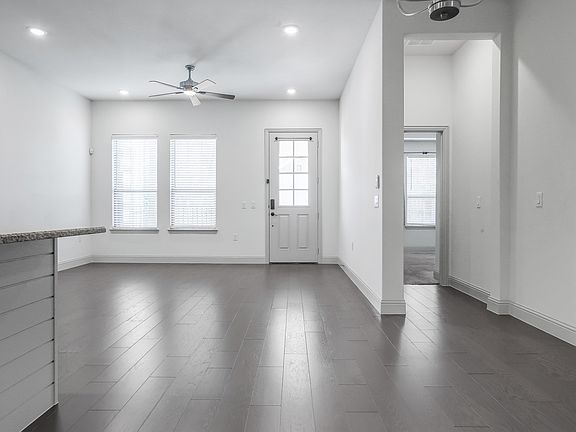 Welcome home to this stunning single-story townhome in the heart of Viridian! This beautifully designed 2 bed, 2 bath layout features soaring ceilings, luxury hardwood floors, and an open-concept plan that flows from the living and dining areas into a gourmet kitchen. Enjoy granite counters, a chef-grade gas range, stainless steel appliances, and an oversized island—perfect for both daily living and entertaining.