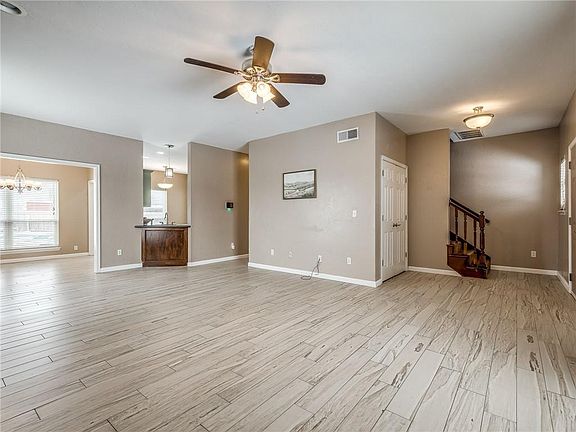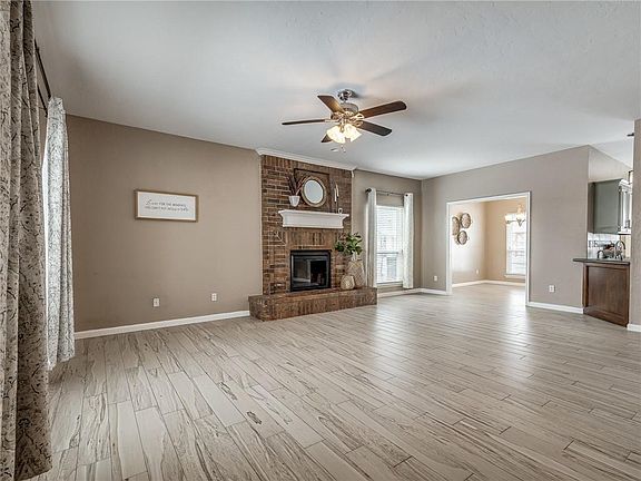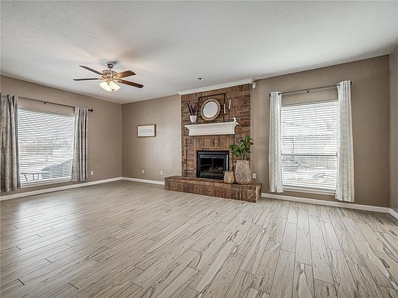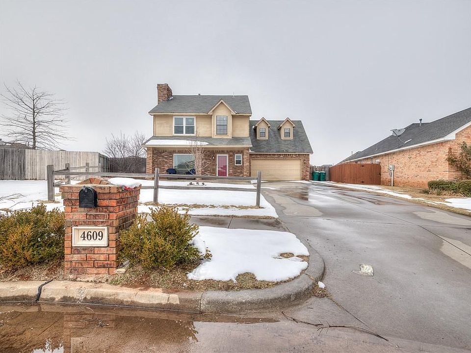 Great location close to the turnpike! Its hard to think summer with all our recent snow but our Oklahoma summer is coming and you will love this large yard, recreational swimming pool and Koi pond! All bedrooms are located upstairs PLUS a bonus room that would make a great playroom, theatre room or office. The kitchen and living room are on the main floor.The kitchen has stainless steel appliances, pantry and laundry connections. Spacious living room with wood burning fireplace and wood like tile throughout the main floor. Master bedroom is generous in size and has a large walk-in closet. Inviting front porch, security system, storm shelter in the garage and storage building. Located in the desirable Yukon school district and a less than a mile to the turnpike and to town. This darling home offers a lot -just needs some TLC to make it yours. Bold bedrooms recently repainted a neutral color & exterior scheduled to be painted 1st week of February.