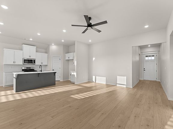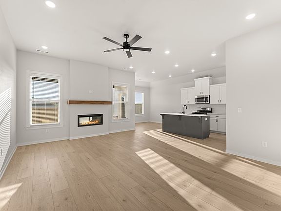 Discover your dream home in the sought-after Osage Hills neighborhood. Benton plan with garage on the left and West facing! 10 ft ceilings in the living/kitchen area, linear electric fireplace in the living, 1 level, LVP flooring throughout the main living areas and primary bedroom, quartz countertops and more. Chef's kitchen boasting frigidaire stainless steel appliances, gas range, pantry, quartz countertops, bar pull handles, large island and gorgeous backsplash. Luxurious primary bedroom features abundant natural light, while the spa-like primary bathroom offers a walk-in shower, double sinks, and spacious walk-in closets. Additional features include three large secondary bedrooms and a separate laundry room. Nestled on a generous lot with covered patio that overlooks the serene sodded, fully fenced backyard. Model home located at 6008 SW Coywolf St- Lot 122.