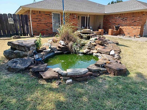 Cul-de-sac living with a lovely back yard, outdoor kitchen, covered patio, above ground pool and an 8x10 shed for storage. This 3-bedroom 2 bath has 3 rooms ready for your choice of flooring. Updated windows with new screens throughout. The pond in the front yard is low maintenance and the fish come with it. Refrigerator, Washer, Dryer, Reverse Osmosis and Hot Tub stay. Water softener will go with Seller.