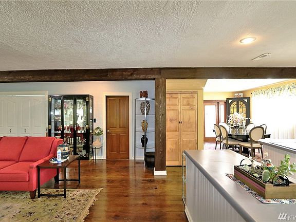 SO MUCH CHARACTER! This 3 bed., 2 bath features cedar walls, wide pine planked floors, open kitchen with bar, laminate countertops, cozy woodstove, vaulted ceilings, skylights, newer carpet, large garage/shop with extra work space and upstairs bonus room, thermal pane windows, tons of storage, french doors leading to your 20x20 deck & privacy fenced backyard with fruit trees, fully landscaped front yard with pond! There are so many unique things about the home to list...This one won't last long!