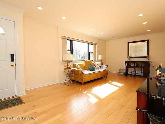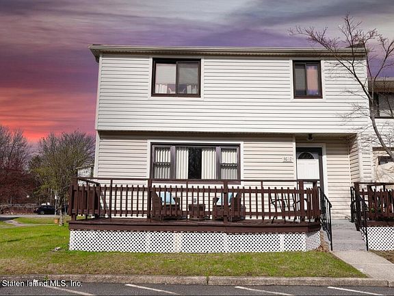 Home buyers, welcome! We proudly introduce a stunning 3-bedroom, 2-bathroom condominium, perfectly situated in one of Staten Island's most sought-after neighborhoods. Upon entering, you'll be greeted by a spacious and formal living room, complete with large windows that allow ample natural light to filter through. The recently updated galley kitchen features quartz countertops and stainless steel appliances alongside a spacious dining room and a half bathroom. Off the kitchen, you'll find stairs leading to a fully finished basement with 7-foot ceiling height complete with extra space, laundry room, and utility room. The second floor boasts three generously sized bedrooms with ample closet space and an updated main bathroom. Beautiful hardwood flooring is present throughout. Recent upgrades include a new roof, HVAC, hot water heater, washer, and dryer. HOA covers water, outside maintenance, assigned parking, landscaping and snow removal.