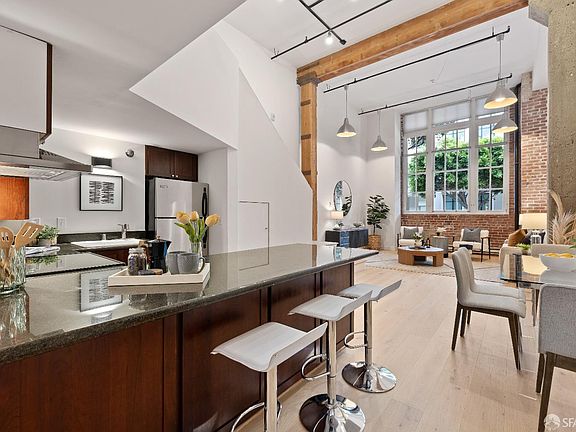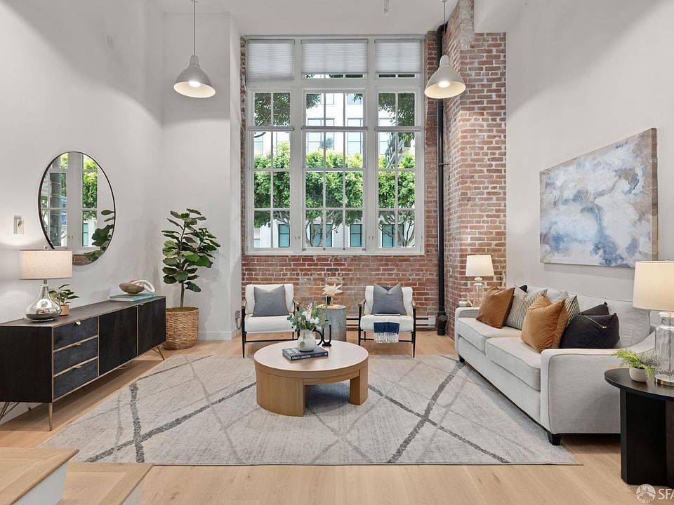 Welcome to this timeless 1BD/1BA loft in the iconic Clocktower Building, one of San Francisco's most coveted live/work warehouse conversions. Rich with character, it features exposed brick and timber, soaring ceilings, and expansive industrial windows that flood the open-concept living space with natural light. Brand new wide-plank hardwood floors enhance the airy layout, flowing seamlessly to a well-appointed kitchen with a new stove and dishwasher. The lofted bedroom overlooks a serene interior courtyard, offering a peaceful retreat. In-unit washer/dryer, generous storage, and 1 car parking provide extra convenience. The building offers a shared tranquil courtyard, a roof deck with sweeping city views, and a hall of art gallery, adding timeless charm and inspiration. Zoned for LIVE/WORK, this versatile loft is perfect as a stylish home, creative studio, or office. Steps from the Embarcadero, Oracle Park, top dining, freeway access, and leading AI tech firms, it harmoniously blends historic character with modern comfort and urban versatility.