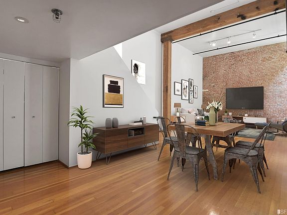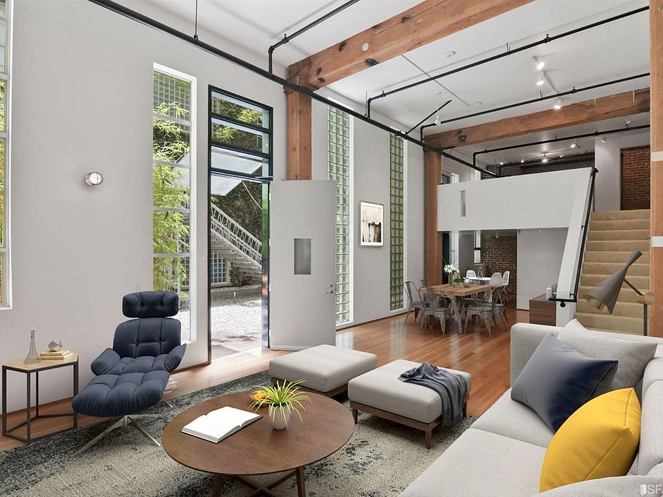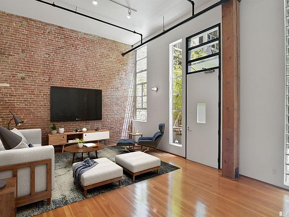 A rare offering of a 'one-of-a-kind'' live/work loft conveniently located in the serene and tropical courtyard of San Francisco's most historically significant loft building, The Clocktower. This stunning loft is located on the first floor in the historical brick building and is one of only a few lofts in the building with its own private and enclosed terrace. The loft is expansive and features 1 bedroom and 1 bath (plumbed for additional half bath in loft area) over two stories and is unlike any other floor-plan in the Clocktower. This dynamic live/work space is adjacent to David Baker's office and shares a huge, lushly landscaped common courtyard. The courtyard is very private, very quiet and serene. The versatility of this live/work urban oasis make it not only ideal as a primary residence but easily convertible to a home office, artist's studio, or flexible work space. NOTE: these images show virtual staging; the property is in fact empty.