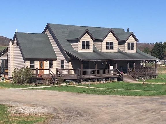Frame constructed one owner home. Built in 2000 on 5.10 acres. House has over 2500 sf of finished living space and a good portion of the 1400 sq. ft. walk out basement is partially finished. All of the rooms are very spacious. On the 1st floor you will find a formal foyer, DR, Eat in kitchen with butcher block island, LR that leads to a 3 season sun room, a cozy family room with wood stove a HUGE laundry room with it's own entrance(would make a nice home office) and a full bath! Also on the 1st floor there are 2 lovely screened in porches.One of the porches is New with a stone Fireplace. On the 2nd floor there are 3 Bedrooms and another full bath with HUGE Jacuzzi Tub overlooking your beautiful acreage. In the basement you will see it is partially finished and waiting for you to complete. In the basement you will find Large Bar Room, a second Family Room and a Bedroom! The 3 car detached garage is really nice and has a finished 2nd floor for the man cave or she shed, or possibly make into an apartment. Lovely Pond! Nice size chicken coop. There is another nice outbuilding that current owners use as a sap house, but what would you use it for? Possibilities are endless! NEW Outdoor Wood Furnace! For those of you who work from home or just need HIGH SPEED INTERNET, seller states Spectrum is available although they use Frontier wireless. Come and see all this unique property has to offer!