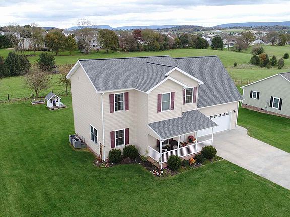 This upgraded, recently built four bedroom single family home on a cul-de-sac in Broadway, Virginia features an attached two car garage, a large lot with spacious back yard, plenty of storage in the garage, hardwood throughout the main level, stairs and upstairs landing, nine foot ceilings throughout, an open layout on the main level, granite countertops, two HVAC system and many more upgraded features. This home is in move-in ready condition and features an open layout on the main level with a living room, kitchen, dining area and play room. The upper level features four bedrooms - one oversized - and two full bathrooms. Don't miss the covered front porch, back deck and long views of farm land and mountains.
