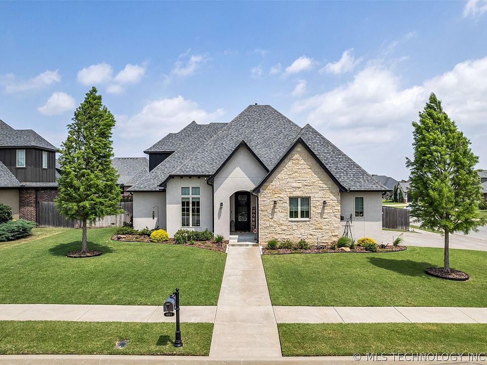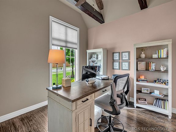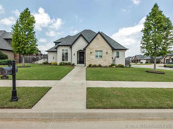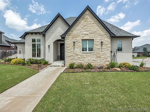 STUNNING! This home in very desirable Yorktown in Bixby schools (new West elementary) has it all! You'll love the beautiful 6cm exotic granites in kitchen, the large built-in fridge, walk-in pantry and hand-scraped wood floors. Home also features a gorgeous master suite with large closets, double vanities, separate tub and shower, a dedicated office, and epoxy floors in the sizable garage. lso, 2 walk in attics offer ample storage! The backyard is an entertainer's dream, featuring a built-in grill. Top off your evenings by lighting your fireplace and relaxing in your very own hot tub. Yard is plumbed for pool, and neighborhood features a beautiful, two large pools and trails, parks, pickle ball, and even a soccer field!