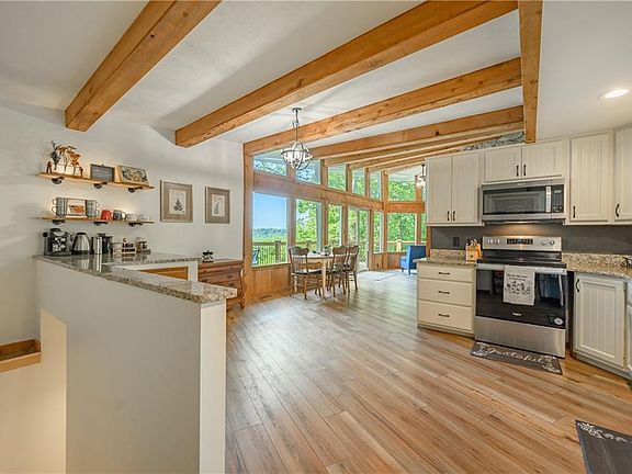 MILLION DOLLAR VIEW!! This stunning rustic/modern house has been completely renovated inside & out! Totally updated plumbing, electrical, luxury vinyl plank flooring, bathrooms & kitchen! Captivating views from every room! Cozy up w/ your morning cup of coffee, sit by the wall of windows, & get lost in that breathtaking vista- one of the best Brown County has to offer. Newly remodeled master suite w/sitting room/office area & spacious bath (double sinks), new kitchen w/stainless steel appliances & coffee bar, gorgeous deck for entertaining that overlooks fenced yard w/fruit trees (cherry/apple/peach). Price reduced from original list price, as a portion of the acreage was removed from the listing.