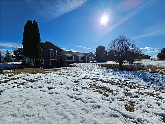 Located on a private road with minimal traffic this inviting home awaits. Offering you your opportunity to embrace Montana living. The living room is truly a centerpiece, defined by a high ceiling that amplifies the sense of space and light, further enhanced by a vaulted tongue and groove ceiling overhead, updated wood flooring offering a warm, natural aesthetic, and an inviting double sided electric fireplace. The kitchen features a peninsula, providing a practical space for meal preparation and casual dining. This single-family residence offers four bedrooms and 3.5 bathrooms, providing ample accommodation and also offers central air for those warmer days. The daylight walkout basement offers a family room with lots of natural light and a gas stove. Tons of garage space with the double attached garage and the detached heated garage that potentially could fit another 3 or 4 cars depending on size along with lots of storage, a reloading room and plumbed with hot and cold water. The property sits on a good sized, level lot in a rural area, affording breathtaking mountain views. Your dog is going to love this huge fenced yard with lots of room to run. Bring your horses and turn them loose. The barn offers three stalls and room to store your hay. This property is fenced and cross fenced with water rights through BRID. The exterior of this home has been updated in so many ways to include all new siding, windows, doors, rain gutters and new roof on the house and garage. Room for parking, room for your trailers and a great covered patio to relax on a warm summer evening after playing with all your critters and toys.