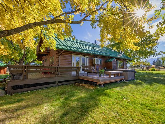 Welcome to 461 Hudson Lane in Victor Montana! This beautifully maintained, 2 bedroom, 2 bathroom log home nestled in the beautiful Bitterroot Valley, offers a bunkhouse and a heated two car garage/shop with bathroom all on 10 acres of horse property! This Montana horse property is minutes away from the Fred Burr trailhead, making it great for hiking or horse back riding right from the property! Built in 1980, this property has all new flooring, three remodeled bathrooms, windows, and exterior staining. The home offers single level living with a primary bedroom/bathroom, an additional bathroom on the main floor, as well as a spacious laundry room. The kitchen flows into the dining/living area which offers vaulted ceilings and windows that take full advantage of the amazing 360 degree views! Upstairs is a loft with a landing area that can be used a an office and the second bedroom.... Outside the home is a wraparound, partially covered deck, next to a manicured lawn with underground sprinklers. This home has a fenced garden with fruit trees and multiple varieties of berries. The shed offers space to store all your property needs. The two additional structures on the property consist of a heated two car garage/shop with bathroom and a bunkhouse which is perfect for guests. The garage/shop has RV hookups. The fenced horse property also offers a loafing shed with power and water for all your livestock needs. There are to many amenities to list. This is a must see property!