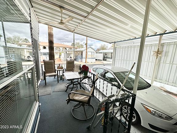 WELCOME TO our BEAUTIFUL 55+RESORT WHERE YOU OWN THE LAND...OWN THE FUN! TAKE a look at this LOVELY 1995 Cavco 1 bed, 1 bath approx 750sq ft AZ room home! HIGHLY DESIRABLE NORTH FACING RESORT LOCATION where you can ENJOY your MOUNTAIN PEAK VIEWS. GREAT LARGE OUTDOOR DECK w/ storage below & PLENTY of room for outdoor furniture to sit & relax & take in the SUNNY AZ weather! GREAT air conditioned BUILT ON STORAGE SHED or use for your hobbies! STEP inside and you will find a GENEROUS U-SHAPED kitchen w/ FULL SIZE STOVE, MICROWAVE W/ NEUTRAL COLORS NEWER HIGH END COUNTER TOPS! PERFECT for all your cooking needs & lots of cabinets! TUB/SHOWER COMBO IN BATHROOM, LAUNDRY ROOM off AZ room w/ FULL SIZE WASHER/DRYER & A CONSIDERABLE AMOUNT OF STORAGE SPACE, REAR DOOR TO BACK PATIO off laundry room ALL ON ONE LEVEL inside w/ GREAT LARGE AZ room for your enjoyment. SCREEN DOOR TO LET THE DAY IN, EXCELLENT for your guests to come visit! QUEEN size bed, mirrored closet doors & tons of additional drawer space! NEWER ROOF, let's not also forget the second refrigerator in built on shed area! THIS CAN BE YOURS TO ENJOY!