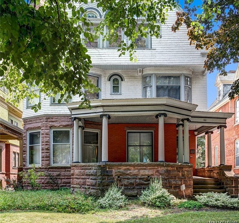 Opportunities galore with this stunning 3-unit property which offers an exceptional opportunity for investors looking to acquire a tenant-occupied multi-family building with steady rental income or an owner user looking to offset their mortgage payments with rents. The property has been meticulously maintained and can easily be transformed back into a spectacular, show-stopping, single family home of the highest caliber. Situated in the highly desirable Historic Preservation District, the second and third floor units are fully leased with reliable tenants, ensuring immediate cash flow from day one. The building consists of three spacious floors, featuring original woodwork, ornate handles, and historic details that simply cannot be replicated. The impressive first floor is currently being used by the owner as an office. It has a front reception area with fireplace, conference room, formal office with fireplace, bathroom, kitchen, central AC and more. The rental units have updated well-equipped kitchens, in-unit laundry, comfortable living spaces, and ample natural light. The second-floor unit has high ceilings, two large bedrooms, two full baths, and a spacious family room with beautiful fireplace. The third-floor unit has two large bedrooms, an eat-in kitchen, and rear porch. Upgrades to the electric, circuit breakers, generator, AC and more. Roof(2015). Full basement houses all the mechanics and currently being used for storage. Full concrete driveway, ample parking spaces, and a two-car garage! Located within close proximity to local amenities such as shops, restaurants, parks, and public transportation. This property provides both convenience for tenants and strong potential for long-term value growth. Whether you're looking to expand your real estate portfolio or seeking a chance to live in one of Buffalo’s most premier residences, this property offers a fantastic opportunity for investors and homeowners alike. Sqft is 5,272 professionally measured with floorplans provided.