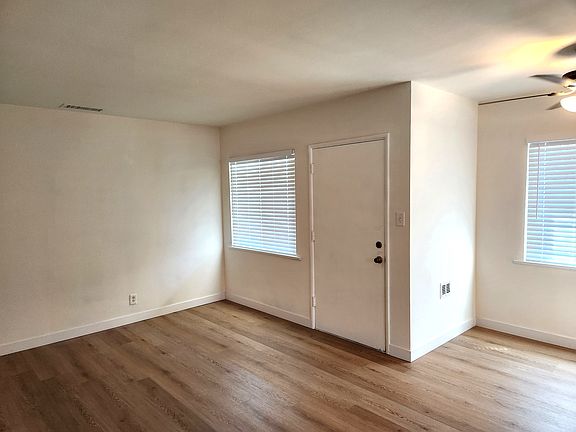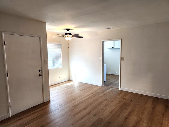 2 bedroom apartment in a tri-plex. 1 bathroom. New wood style vinyl floors, new paint, new quartz kitchen countertops, remodeled bathroom, new heat and AC system, new blinds. Has gas stove, no fridge. 1 car garage. Located close to downtown, just north of Bonita.