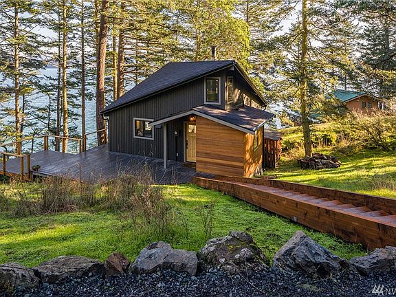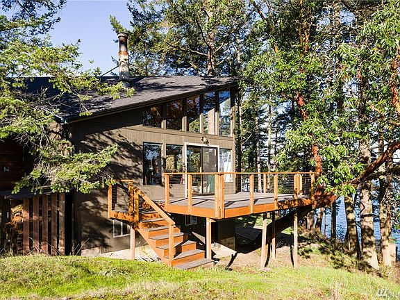 Beautiful Northwest Contemporary home with sweeping views of Lopez sound. Home features vaulted ceilings, floor to ceiling windows, open and airy loft with sleeping for five. Kitchen features new SS appliances and quartz counters. Bathroom has oversized glass enclosed shower with quartz bench and spa fixtures. Enjoy entertaining on your wrap around composite deck with a luxury hot tub. Spend long summer days and evenings on the community private beach and make s'mores in your private fire pit.