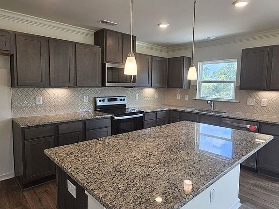 This Smart 2723 sq ft, 4-bedroom Raleigh home ready in November is situated on a sprawling .75-acre Homesite, complete with a sizable loft, a flex room, and a den. This property is constructed with top-quality fixtures and finishes, offering unrivaled privacy and convenience in a serene, tree-filled community that feels like a secluded retreat, yet with no city taxes. Located just minutes from shopping and minutes from the new section of 540, this charming community provides the perfect blend of seclusion and accessibility. This exquisite home features LVP flooring everywhere downstairs, granite counter tops and fiber cement siding. An open-concept floor plan flawlessly unites the living, flex, dining, and kitchen spaces, while the spacious bedrooms, loft, and den provide ample areas to unwind. A true gem of this property is the expanded patio overlooking the expansive backyard on over 3/4 of an acre—a rare find in Raleigh. The generous outdoor space is perfect for enjoying family time, entertaining guests, or simply appreciating the beauty of nature within the comfort of your own home.