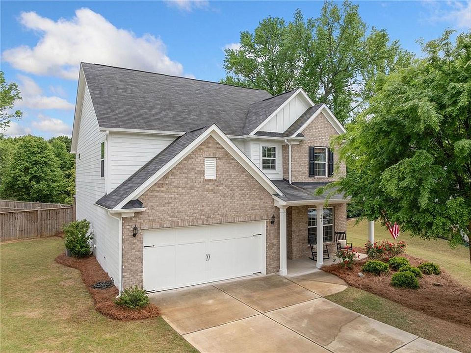 There are not many homes like this one on the market right now so do not miss your opportunity to live in your dream home!!! Better than new, this cul-de-sac home has private fenced backyard yard that backs up to trees and plenty of upgrades throughout. Rocking chair front porch greets you as you approach this beautiful home. Highly appointed interior finishes such as ship lap walls ,wide-planked flooring, Gourmet kitchen w/ updated lighting, over-sized island, stone counter tops, stainless steel high-end appliances, butler's pantry, and walk-in pantry makes for great family gatherings. There is a Large breakfast area off of kitchen and it all opens up to the great room, which features stone gas fireplace. A wonderful sun room gives even more extra space and tons of natural light that flows into the home. Separate dining room allows for an additional area to entertain. Step inside from the garage into a family foyer with a wonderful work/office area which is open to all areas of the main floor. Separate and private flex room is located on main floor, which can be used as a guest room/playroom/office. Upstairs primary suite will delight with trey ceiling and a spa-like bath featuring Over-sized rainfall shower, double vanities, and his/her separate walk-in closets. 3 additional large bedrooms, a bonus room, and laundry room and ample storage. The backyard is amazing! Extra large back patio with pergola. fenced and private!!! No homes to look at behind you, just open and beautiful! Neighborhood pool, playground, nearby trails and parks, and great schools across the street from the subdivision. This location is PRIME!!! Be the first to see it and fall in LOVE!!!!