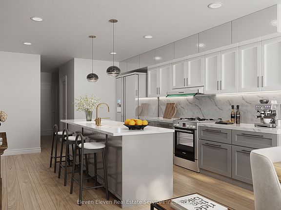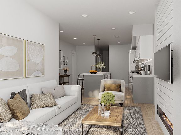 This stylish 1,024 sq ft 2-bedroom, 2-bathroom stacked townhome offers modern open-concept living with custom kitchen cabinetry, a large island, and an inviting living area with an electric fireplace. The primary suite features a walk-in closet and 3-piece ensuite, while the second full bathroom provides added convenience for guests or family. Enjoy your own private sunken patio with walk-up, designated parking, and quality finishes throughout. Located in a newly developed complex with stone and wood-look siding, plus sleek black windows for a modern touch. Comfort and style meet in this beautiful home!
