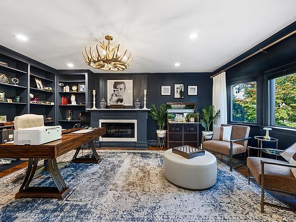 The main level features a dramatic grand staircase and beautiful hardwood floors throughout. Enjoy a spacious chef’s kitchen with granite countertops and an eat-in area, a formal dining room, an oversized living room with a wood-burning fireplace, a private home office with fireplace and custom built-in library, and a beautiful powder room!