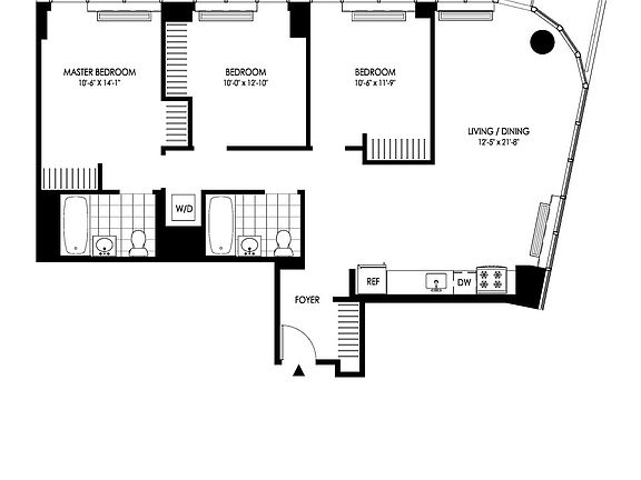 Stunning 3 bed, 2 bath apartment featuring a spacious private balcony with northern city and river views. This home also has a beautiful corner living area with a linear kitchen, in-home washer/dryer, ample closet space, and northeast exposure. Gross Rent $8375.