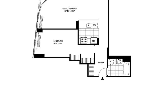 Stunning 1 bed apartment featuring a wraparound balcony with panoramic views of the East River and Manhattan skyline. This home also features a spacious corner living area, beautiful open kitchen, high ceilings, ample closet space, and northwest exposure.