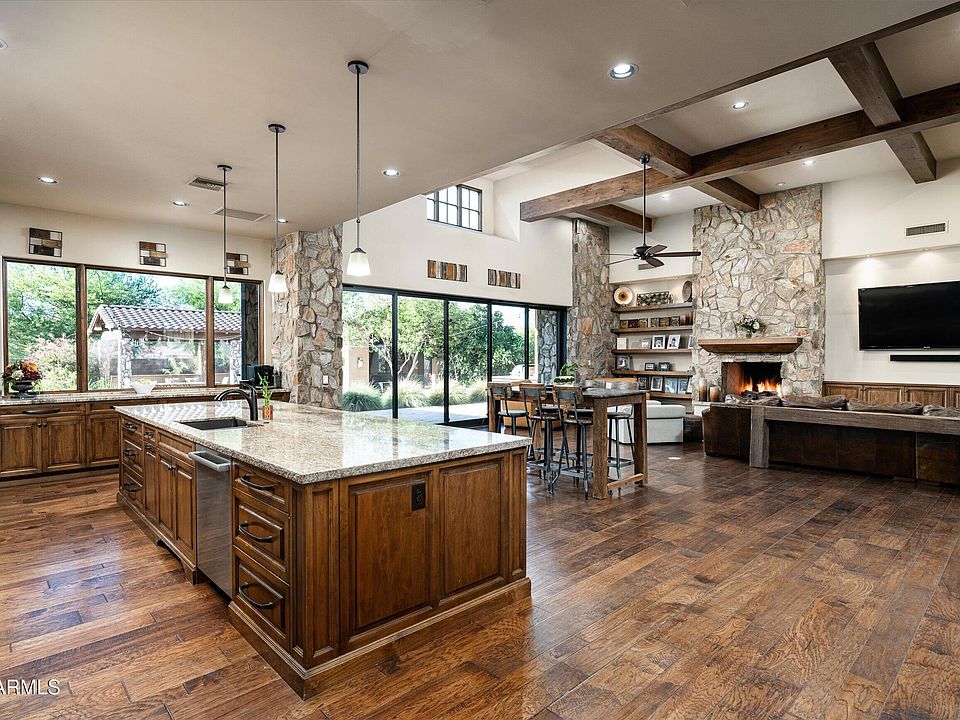From the moment you arrive, you're greeted by impeccable curb appeal, meticulous craftsmanship, and an atmosphere of refined grandeur. Designed for the discerning homeowner, every inch of this property reflects a commitment to quality, style, and comfort. Custom built in 2012 by Sonora West Development this home boasts tall ceilings, gorgeous wood beams, alder cabinets, granite countertops, wood casement windows, rich wood floors throughout. The floor plan flows effortlessly through the house from the the formal dining room with French doors opening to a romantic front fireplace in the entry courtyard, to the grand chefs kitchen that opens to the stunning living room with 20 foot disappearing slider glass door and floor to ceiling quartzite stone fireplace & accent walls for cozy nights with the family. Enjoy hosting the holidays with a 250 bottle temperature controlled wine cellar. The office has custom crafted built ins and French doors out to the front entry. The primary suite is a true retreat with spa like bathroom and thoughtfully laid out walk in closet with built ins. The secondary bedrooms have walk in closets and en suite bathrooms. There is a detached guest room off the garage and pool area perfect for a home office. a workout room or artists studio!