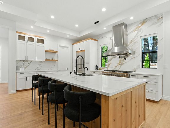 Prepare to be captivated by this exquisite modern farmhouse, a true one-level living masterpiece that embodies elegance and comfort. Nestled in the heart of one of West Linn's most desirable neighborhoods, this nearly new chic and clean-lined residence offers unparalleled exclusivity and privacy. Perfectly designed for entertaining and daily living, this home is a sanctuary where sophistication meets functionality. Welcome to this 4 bedroom plus a cozy library, 2.5 bathroom dwelling with a harmonious, open-concept floor plan where every detail has been meticulously curated. The inviting living areas are bathed in natural light, courtesy of the soaring tall ceilings and strategically placed windows. The intimate library is the perfect spot to unwind by the fireplace, while the private office provides an ideal workspace, blending productivity with tranquility. At the heart of the home is a showstopping gourmet chef’s kitchen appointed with state-of-the-art Fisher & Paykel appliances and sleek, designer finishes. The expansive island provides space for elegant culinary creations and casual dining, all while flowing effortlessly into the outdoor living experience. Step through the expansive doors to reveal a breathtaking open-air retreat that elevates entertaining to new heights. The covered patio boasts an outdoor kitchen complete with a Spire gas range, perfect for summer barbecues or cozy gatherings year-round. The oversized two-car garage features a sleek epoxy floor, offering ample space for vehicles and storage—an ideal blend of durability and style perfectly suited for Pacific Northwest living. Situated on a no-through-street, this property is surrounded by lush parks, scenic walking trails, and an array of shopping options. With easy access to I-205, the entire Portland metro area is at your fingertips. With its unparalleled design, luxurious features, and prime location, this property represents one of the finest offerings in the market.