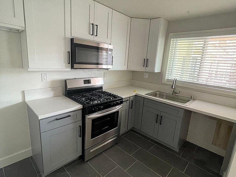4610 Kester Ave. Sherman Oaks, CA 91403 We have a 1+1 Upper Unit with a Big picture window that has a nice view of the pool. This 24 Unit Building has beautiful New Granite Kitchen countertops, with a Quartz bar countertop that separates the kitchen from the dining area. This unit has been Renovated: Shaker kitchen cabinets, Granite kitchen countertops, stainless steel appliances, dishwasher, stove and microwave. Laminate flooring in Living room, dining room and bedroom, Recessed lighting, New blinds throughout unit, new fixtures, Wall AC's in the living room and bedroom, Beautiful gray tile in the kitchen and we have also changed the bathroom floor to match (not shown in picture) spacious bedroom with wall-to-wall closets and additional storage above, New vanity and tile backsplash in shower/bathtub, pool, laundry on site and Gated building.