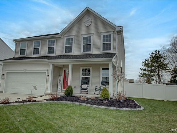 BEAUTIFUL 6 years young Colonial! The landscape on this large lot was professionally done. A stamped concrete pad off the sun room was added in 2019, and a retractable awning in 2018. On the roof a ridge vent was added the entire length of the roof to prolong the life. Lots of extra windows added, this home is so beautiful and BRIGHT! Extra large island seats 6 comfortably. Inside this home, it has the added on sunroom with TONS of windows, a gas insert fireplace, a large kitchen with a large island. The front room is currently being used as a toy room but has endless options! Gorgeous laminate plank floors throughout. Second floor laundry room, 4 bedrooms, 2 full baths and an ENORMOUS amount of closet space completes the second floor. The basement has been crafted creatively into a playroom and bar! Do not miss this opportunity at a new home for less than you can build with TONS of upgrades, and lots of add-ons after close! Showings start Wednesday May 15th at 4Pm Showing Schedule is as follows: Wednesday Thursday Friday 4-8pm Saturday and Sunday- available all day Please Schedule through ShowingTime. Offers if any are due Monday May 20th at 12:00pm.