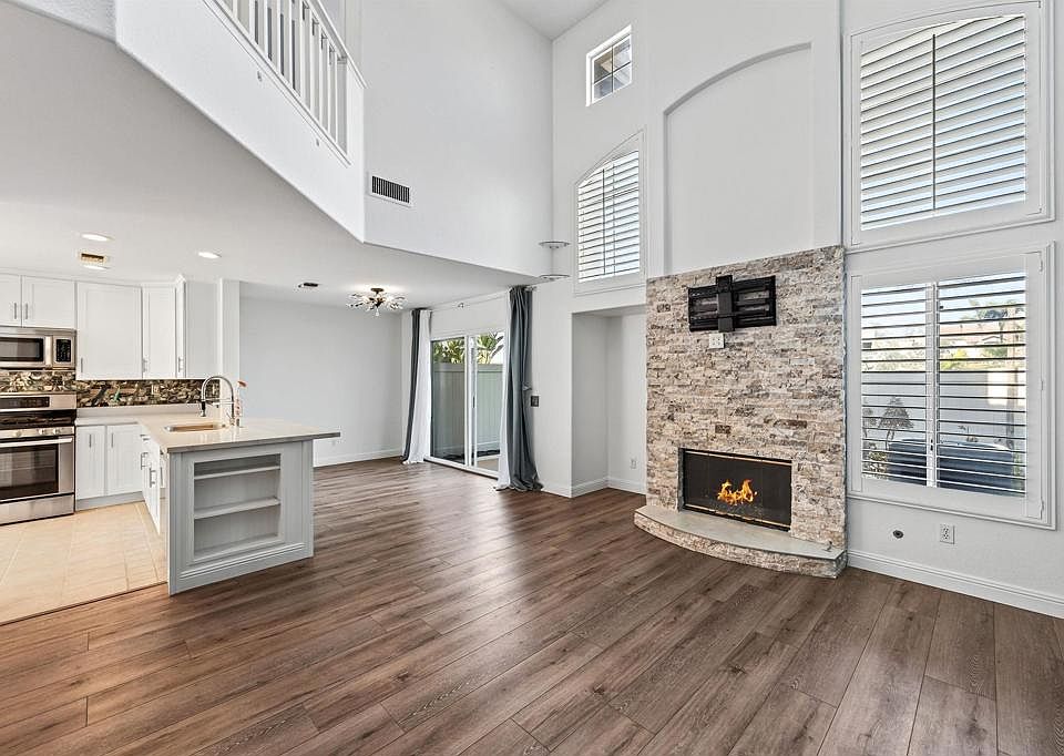 Freshly painted and updated! Located in the desirable GATED Alacima community of Rancho del Oro, this BEAUTIFULLY UPGRADED 3-bedroom, 2.5-bath townhome with a 2-car attached garage features FULLY OWNED AND PAID SOLAR and smart home technology—offering energy efficiency, comfort, and long-term savings from day one. Inside, an open-concept layout welcomes you with soaring ceilings, abundant natural light, and coastal-inspired designer finishes. The kitchen shines with white quartz countertops, shaker cabinetry, stainless steel LG appliances, GAS COOKING, and an ocean glass tile backsplash—flowing effortlessly into the dining area and living room. Step outside to a private enclosed patio, ideal for pets, gardening, or simply relaxing and entertaining—perfect for everyday living or turning each day into a mini getaway. Upstairs, all three bedrooms are thoughtfully positioned for privacy. The light-filled primary suite offers vaulted ceilings, dual closets, and a stylish ensuite with a dual-sink vanity and a large walk-in shower. Two secondary bedrooms share a Jack-and-Jill bathroom with a separate vanity area for added functionality, while a convenient second-floor laundry room provides ample cabinet storage and folding space. Enjoy the security of a gated community with beautifully maintained resort-style amenities, including a heated sparkling pool, spa, and a charming tot lot—all just steps from your door. Part of the highly regarded Oceanside Unified School District and just a 15-minute walk to Ivy Ranch Elementary—with Coastal Academy nearby—this home is also located in an FHA and VA approved community.