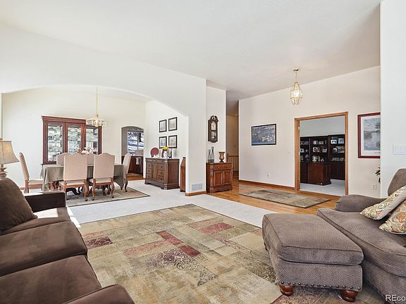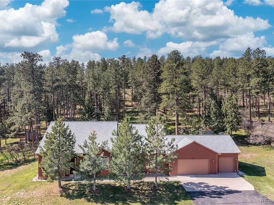 Tranquil ranch retreat in Perry Park! This idyllic haven is surrounded by towering pines on nearly an acre of land. Over $100k invested in improvements in the last 2 years. Step inside to discover a harmonious blend of modern comfort and rustic charm where an open floor plan with 9ft ceilings is bathed in natural light. The main living area boasts gleaming hardwood flooring complemented by plush new carpeting, creating an inviting ambiance perfect for both relaxation and entertainment. A sprawling kitchen, adorned with GE Café appliances, features a gourmet oversized gas cooktop, granite countertops, and abundant cabinetry. Enjoy casual meals in the eat-in table nook or host formal gatherings in the dining room. Unwind in the cozy front family room or retreat to the dedicated home office, complete with elegant French doors for privacy. The spacious primary suite offers a peaceful sanctuary with a generous walk-in closet and a five-piece ensuite bathroom, while two additional bedrooms and another full bathroom provide comfort for family and guests. For future expansion or storage needs, a large unfinished basement awaits your personal touch. Outside, a stone two-level covered patio, with a recently finished ceiling, beckons for al fresco relaxation, featuring an external gas fireplace for year-round enjoyment. A temporary fence caters to the needs of pets, while the fully insulated three-car garage offers additional convenience. Embrace the natural splendor of the surroundings with abundant wildlife including visits from deer, foxes, bears, bobcats, wild turkeys, and various bird species. Nearby, the prestigious Perry Park County Club awaits for world-class golfing experiences and fine dining adventures. Whether savoring evenings by the crackling fireplace on the patio or reveling in the soothing sounds of the wind rustling through the pines, this exquisite property promises a lifestyle of tranquility in a coveted Colorado setting!