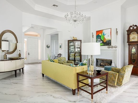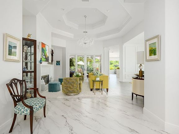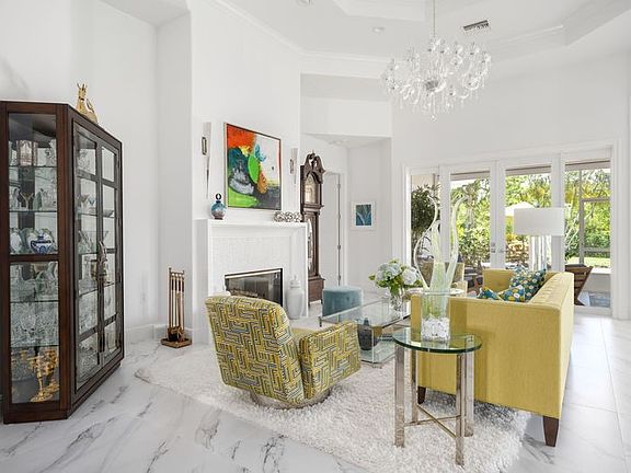 Luxurious Bermuda designed exterior & spacious modern interior boasts 14' high octagon tray ceiling in living room, wood burning FP & custom moldings. European inspired kitchen & baths, large 36"x36" porcelain tile floors & walls. KitchenAid appliances 36” cooktop, French door bottom freezer, built-in oven/microwave, 36” hood & Bosch DW. Owner's suite, has 2 vanities, soaker tub, lg shower, walk-in-closets, custom shelving. Impact windows & storm shutters, Hurricane insulated garage door, whole house Generac generator, BBQ gas line, 2 A/C units, split A/C in garage & central vacuum.Rmszapprox