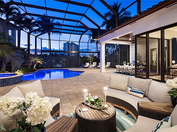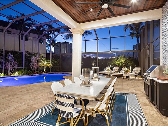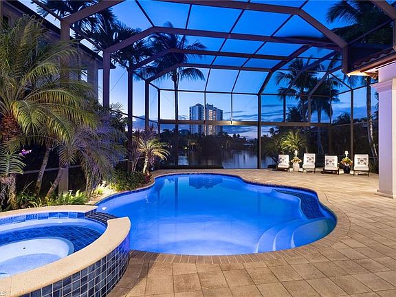 Stunning newly renovated and reimagined waterfront estate home in The Colony Golf and Bay Club! Located on a tranquil cul-de-sac street in the community of Bellagio in The Colony Golf and Bay Club. No expense was spared in the imagination of this home including NEW ROOF 2025, NEW HOT WATER HEATER 2024, NEW CUSTOM ONE OF A KIND LIGHTING FIXTURE in dining room, NEW LIGHTING THROUGHOUT, NEW PLUMBING FIXTURES, NEW COUNTERTOPS, NEW REFURBISHED POOL AND SPA, NEWLY DESIGNED OUTDOOR KITCHEN, TILED 3 CAR GARAGE WITH BUILT IN STORAGE AND EV SETUP, NEW CUSTOM GARAGE DOOR, OUTDOOR LANDSCAPE LIGHTING AND NEW LANDSCAPING And MUCH MORE! Step into this magnificent estate home through custom entry wood doors into the luxurious living room with floor to ceiling custom gas fireplace and spectacular views of the lake, waterfall, and tropical paradise setting with oversized pool and spa. This home is made for fabulous entertaining! Your friends and family will love your covered lanai area with a summer outdoor Viking grill kitchen. Your chef’s gourmet kitchen boasts a center island with sink, custom cabinetry, cabinet front sub zero and wolf appliances, new countertops, breakfast bar, and breakfast room with an amazing view! Plenty of space and in this home with four bedrooms plus a separate den which offers spacious living quarters and privacy for all of your family and guests. The grand owners master suite offers wood flooring, his & her large custom closets, an inviting master bath with jetted tub, dual shower, dual vanities, and separate water closet with bidet. Enjoy paradise while entertaining in your magnificent outdoor lanai with oversized heated pool and spill-over spa and spacious covered dining space along with a view that will "wow" you! You will love what this estate home has to offer including two triple impact window sliders in family room, custom detailed soaring ceilings, crown moldings, custom painting throughout, and custom travertine marble flooring in the main living areas and wood flooring in your guest bedroom suites. Enjoy your tranquil water views with an added bonus of a tropical waterfall on your expansive lake! This home has truly been reimagined with custom features throughout and newly updated and redesigned with an artful eye. The Colony Golf and Bay club offers world class amenities with a 34 acre private beach island with hourly boat transfer to and from the island, enjoy waterfront dining at The Bay Club along with kayaking, pickleball, bocce ball, fitness center with spa, tennis, & 18 hole championship golf course. Skip the waitlist for golf as this home has a FULL GOLF MEMBERSHIP available to purchase for immediate golf access or enjoy the private club with a social sports membership. Don’t miss out on this opportunity for your chance to live in paradise in a one of a kind uniquely designed custom estate home!Make your private showing appt to view this new waterfront estate home! You will be “wowed” once you step in the front door!