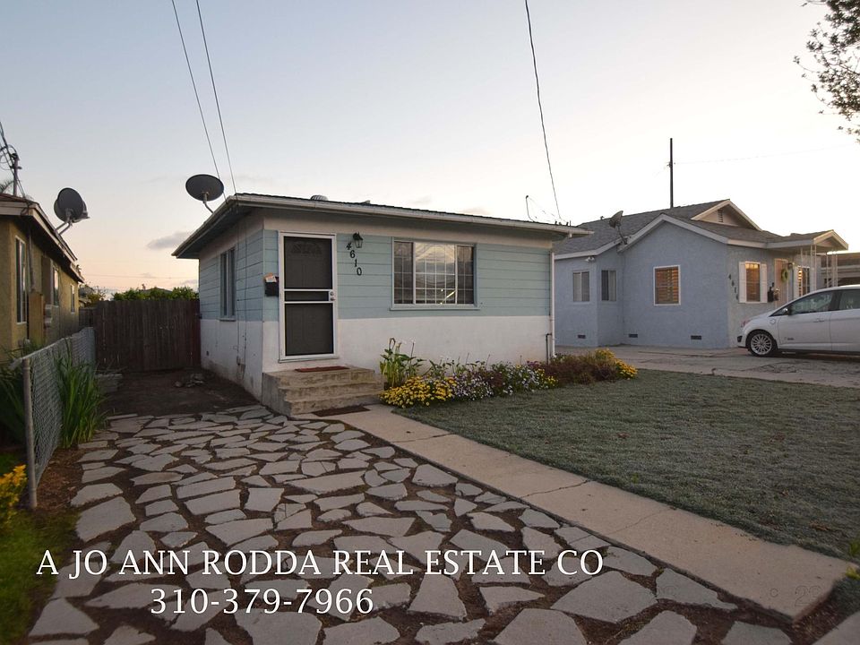 Single house, alone on the lot. Real hardwood floors. Washer, Dryer, Stove and Refrigerator included. Large Closet. Bright and Airy 1 bedroom, 1 bath house. Off street parking. No smoking. One dog and/or cat considered for a monthly fee. Owner has to meet the dog and approve the breed; owner will not accept more than one dog. Walk to the grocery store, shopping, and restaurants. Short distance to the ocean in Manhattan Beach, Hermosa Beach, Redondo Beach and Torrance. Easy access to the 405 Freeway. Owner is not planning to sell property; long term tenant appreciated. Tenant pay all utilities. This is a house, single standing with large well fenced private yard. The yard is being relandscaped with drought resistant plants. For move-in, you pay security plus first month's rent. You must have a existing bank account, good credit, no bounced checks, no late payments, no collections and a good credit score. 4610 W 152nd St, Lawndale. (Take Inglewood Blvd to 152nd St) Call to arrange for a showing. A Jo Ann Rodda Real Estate. No smoking. Available now. Do not email for more information from website. Maximum 1 dog. Good credit required. 1 year lease