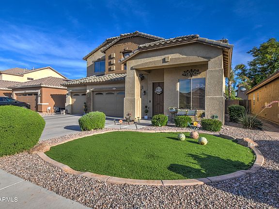 You will not find a house as nice for the price it is and you will love everything about this amazing home. The first thing you'll notice when you pull up is the fantastic curb appeal and beautiful landscaping. Located in the well maintained and sought after subdivision of Maricopa Meadows you'll be close to great schools, parks, shopping, and more. Offering spacious bedrooms, separate living & family rooms, and an enormous loft. Your new kitchen offers granite countertops, island with breakfast bar, tile backsplash, and plenty of cabinet storage space. In the primary bath you'll find a walk in closet, garden tub, separate shower, private toilet room, and double sink vanity. In the backyard is a covered patio and plenty of room to relax!!