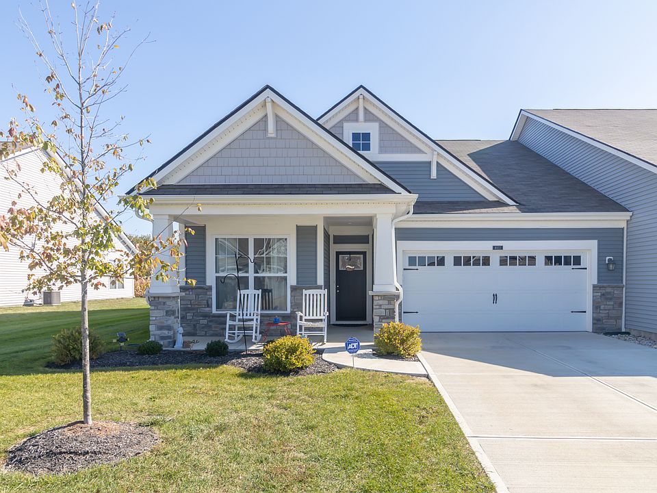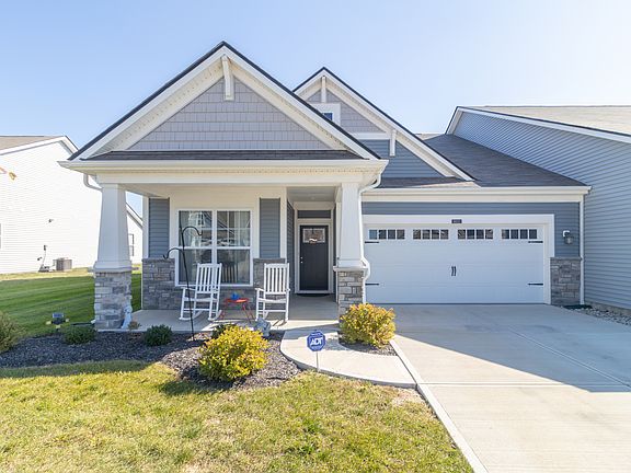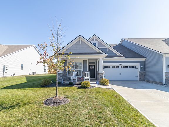 MAINTENANCE-FREE LIVING WITH PEACEFUL PRIVACY IN BETHEL CREEK! Welcome home to this beautifully maintained 2-bedroom, 2-bath patio villa offering the perfect blend of comfort, convenience, and serenity. Built in 2021, this single-level home features over 1,500 square feet of thoughtfully designed living space and an inviting open floor plan ideal for everyday living and entertaining. Step inside to find a bright and spacious great room that flows effortlessly into the dining area and kitchen, the heart of the home. Enjoy gathering around the center island, cooking with modern stainless steel appliances, and relaxing in a space filled with natural light. The primary suite is a true retreat with its generous size, walk-in closet, and beautifully tiled walk-in shower. A second bedroom and full bath offer flexibility for guests, a home office, or hobby space. The finished garage with durable epoxy flooring provides both style and functionality, perfect for storage or a workshop setup. Outdoor living is just as enjoyable here. Relax on the covered front porch, unwind on the covered back patio, and take in the peaceful view of the open cornfield behind the home, offering rare privacy with no neighbors directly behind you. Enjoy the ultimate low-maintenance lifestyle with HOA services that handle lawn care, landscaping, snow removal, and exterior maintenance, leaving you free to simply enjoy your home and community. With easy access to Wanamaker, I-74, and top-rated Franklin Township schools, this is a wonderful opportunity for stress-free living in a sought-after location.