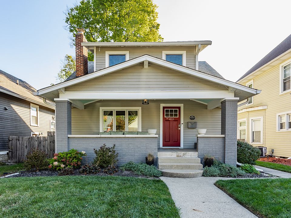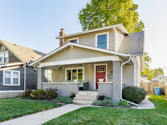 Nestled in the coveted Meridian-Kessler neighborhood near the Monon Trail and premier dining, this craftsman offers an unmatched blend of character and modern design. The welcoming, expansive covered front porch invites you in. Inside, original hardwoods flow throughout, centering on a stunning brick gas fireplace in the living room. The home features recessed lighting and a whole-house audio system for effortless everyday living and entertaining. The chef's kitchen impresses with stainless appliances, a striking granite waterfall island, breakfast bar, plus bench seating and smart storage. A main-level bedroom connects directly to a full bath. Upstairs, find three generous bedrooms - one reimagined as a luxurious walk-in closet with barn-door access to the primary - and a sleek hallway bath with double vanity and a large tiled shower. The finished lower level includes a rec room, bonus room for office/guest/gym use, full bath, and laundry. Outside, enjoy a fenced yard, covered rear patio with fans, firepit, and detached two-car garage with separate electrical for EV charging. Experience thoughtful updates and timeless craftsmanship in one of Indianapolis's most desirable neighborhoods.