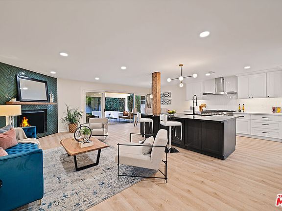 Newly remodeled 4 BD/2 BA located in prime Sherman Oaks and just seconds to Ventura Blvd. Private and gated, enter to find a completely open floor plan with designer finishes throughout. The living room offers a fireplace and is open to the eat-in chef's kitchen with a huge center island, Sub-Zero and new appliances along with plenty of space to cook and prep. The spacious primary suite has direct access to the backyard along with two large walk-in closets and en-suite bath. One bedroom located near the entry is staged as a secondary living room or can be a perfect office for those who work at home. The other two bedrooms are also generously sized, and adjoin a spacious full bath offering with double vanities. Out back you will find a fully covered patio that opens to a large grassy area with fruit trees, ideal for entertaining. Located moments to all of the dining and shopping on Ventura Blvd and easy access to freeways, studios and more, welcome!