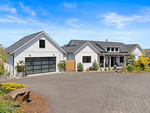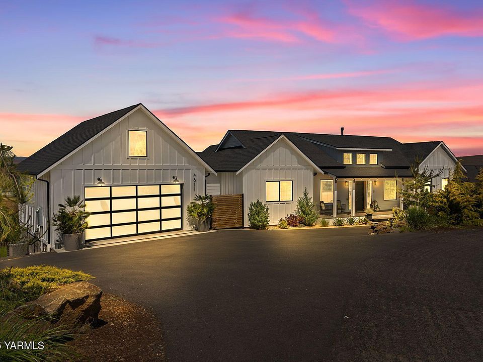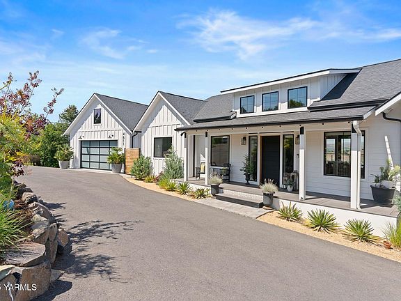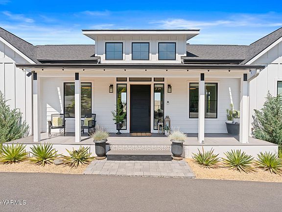 Beautifully situated on the corner of Hilltop and Scenic Drive, this quintessential modern farmhouse delivers panoramic views of Yakima Valley farmland and boasts the most majestic sunsets the valley has to offer. A rare combination of modern luxury, timeless quality and natural beauty, this turnkey home embodies the very best of wine country living.Inside, expansive windows frame vineyard and orchard vistas from nearly every room. A light-filled open floor plan, white oak flooring, and high-end finishes create a seamless blend of sophistication and comfort. Step outside to enjoy multi-level decks, perfect for sunrise coffee or sunset gatherings, while the spacious backyard offers room to design your dream pool oasis.The versatile lower level is designed for today's lifestyle, complete with a sleek wet bar for entertaining, a private office for quiet focus, and a dedicated workout room featuring a modern garage door that opens to fresh air and panoramic views.Just minutes from freeway access, this turnkey residence balances privacy with convenience. With furnishings negotiable, it's a rare move-in ready opportunity in one of Yakima's most coveted neighborhoods. Every detail has been crafted with intention--offering a home as extraordinary as the scenery that surrounds it.