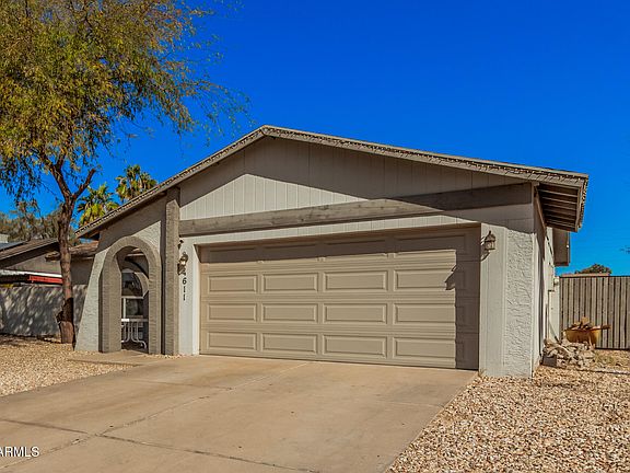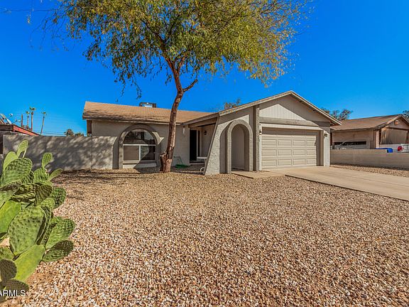 MODERN! BRICK HOME! NO HOA!! This single-family home features 2 bedrooms, 2 baths, 2 car garage, RV Gate & a very large backyard with a new block fence. This completely updated home showcases a modern kitchen, stainless steel appliances including the refrigerator, new cabinets, quarts countertops, vaulted ceilings, tile flooring throughout the entire house, large windows, lots of natural light, open & spacious floor plan, light & natural colors. washer & dryer included. The backyard is an open canvas to make it your own. Concrete slab is ready for your gazebo. Situated minutes from the I-10 and 101 freeways, with easy access to downtown Phoenix, Sky Harbor Airport and Westgate Entertainment District. Near schools, restaurants, entertainment, places of worship & much more! A must see!
