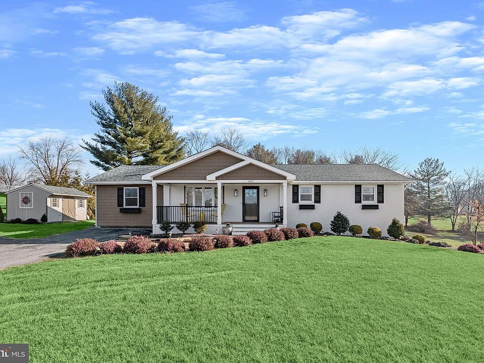 OFFER DEADLINE MONDAY, 1/16/23, 12PM. PLEASE REACH OUT TO LISTING AGENT FOR ANY FURTHER INFO. Stunning Rancher is completely renovated and situated on a private 0.92-acre lot! Boasting gleaming hardwood floors, a neutral color pallet, and design-inspired features in every room! Spacious living room embellished with a fireplace, crown molding, and a light-filled bay window; Formal dining room adorned with box wainscotting, crown molding, and French doors; Eat-in kitchen with sleek stainless-steel appliances, display cabinetry, quartz countertops, island, breakfast bar, decorative backsplash, casual dining area, and easy access to the amazing deck; Owner’s suite highlighted with an en-suite full bath; Two bedrooms, full bath, and sizeable custom laundry room complete the main level; Travel downstairs to find the expansive family room, full bath, workshop, and storage; Exterior Features: Landscaped grounds, deck, fence, secure storage, covered front porch, extensive hardscape, private lot, and backs to trees; Recent Updates: Kitchen, bathrooms, lighting, paint, deck, roof, windows, flooring, and more! A MUST-SEE!