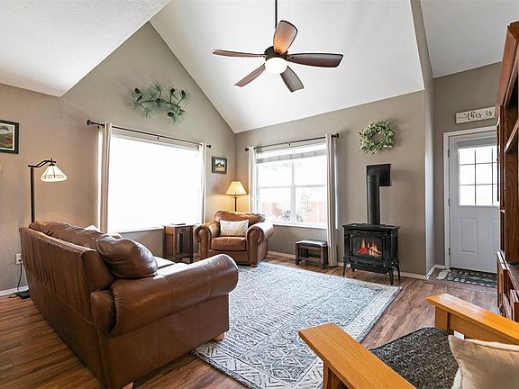 This 3-bed, 2-bath home features vaulted ceilings that allow natural light to fill the open-concept living and dining areas, creating a spacious yet inviting atmosphere. The renovated kitchen is perfect for entertaining, with hard surface counters, stainless steel appliances, and bright cabinetry. For convenient main-level living, the laundry and primary suite are located on the first floor. The primary includes an over-sized closet, and a bath with a remodeled, fully tiled walk-in shower featuring glass blocks that diffuse sunlight, as well as comfortable marmoleum flooring. Upstairs, you'll find two additional bedrooms with high ceilings, walk-in closets, and a second bathroom with updated flooring. Outside, the private patio in the fully fenced yard offers views of a garden towering with hollyhocks and sunflowers in midsummer. Alternatively, enjoy conversations with friendly neighbors from the large covered front porch as they venture to one of the many nearby neighborhood parks.