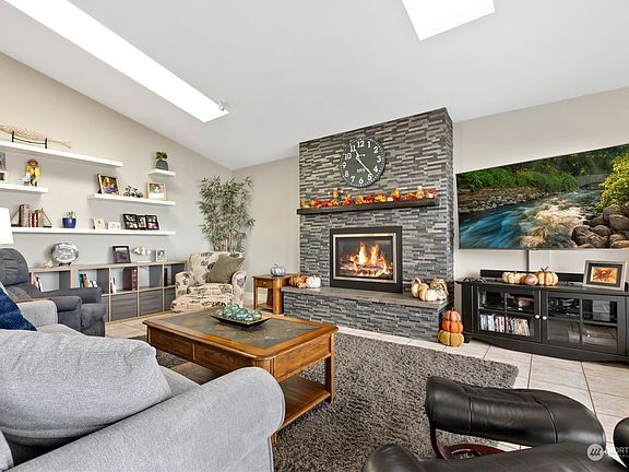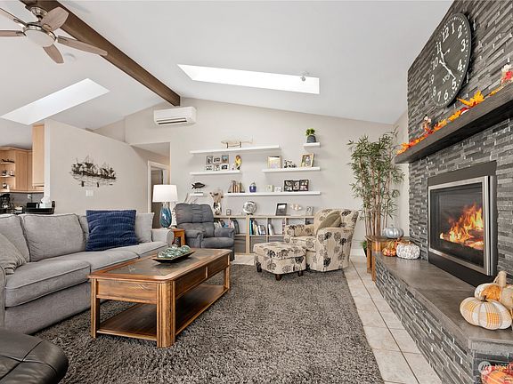 The gentle surf at this meticulously maintained low bank waterfront property is a ready-made oasis. Just minutes from Bellingham this 3+ bdrm, 3 bth home w/ office, boasts main floor living, vaulted great rm, insulated and heated 2 car garage, a 34'x20' deck w/ cover, & exquisite island views. The property was just remodeled allowing you to move in & simply enjoy the elegance of the seaside design. Skylights abound creating a bright spacious feel, while every detail is about quality & comfort: all doors are solid core, trim & window surrounds are wood, counters are granite, tile showers, bamboo cabinets w/ soft-close doors & dovetail drwrs, a gas fireplace, and main flr laundry w/ sink. As a bonus a large guest suite is on the upper flr.