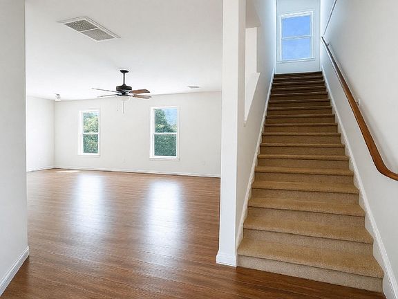Discover this stunning 4-bedroom, 2.5-bathroom home offering a perfect blend of modern comfort and classic charm. Spanning two stories, this residence provides ample space for everyone. The main level features luxury vinyl plank flooring throughout, creating a seamless and durable flow. You'll find a dedicated home office perfect for remote work or a quiet study area. The kitchen boasts sleek countertops and ample cabinet space, opening up to a spacious living and dining area, ideal for entertaining. Upstairs, plush carpeting creates a cozy and quiet retreat. The primary bedroom is a true sanctuary with a huge walk-in closet that provides plenty of storage. All of the bedrooms offer comfort and privacy for family and guests alike. The sizable backyard is a blank canvas, ready for you to create your own outdoor oasis. Located in a friendly neighborhood, this home is the perfect place to grow and make lasting memories.